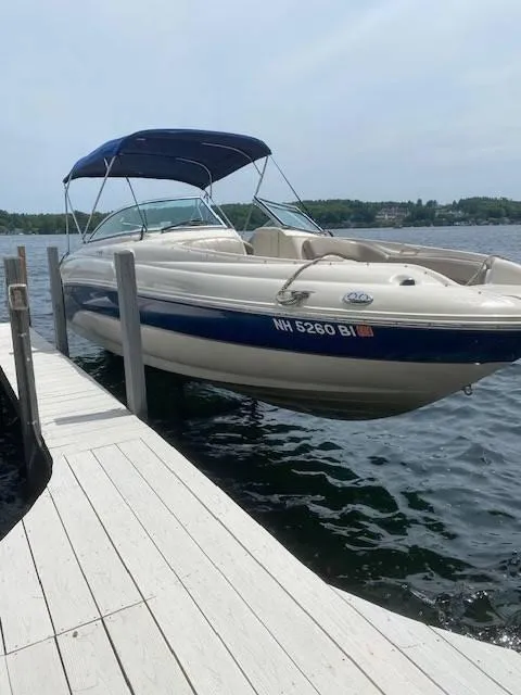 The 2004 Sea Ray 240 Sundeck is a stunning vessel that boasts exceptional quality and condition. With only 670 well-maintained hours on a MerCruiser 5.0 Engine. this Sundeck has been meticulously cared for and is in great condition. It was sold by us and stored with us. The boat has a Bimin top, Sink, Head and GPS. This listing presents a unique opportunity to own a top-of-the-line Sundeck that has always been in high demand. This boat can be seen at our Laconia Location.