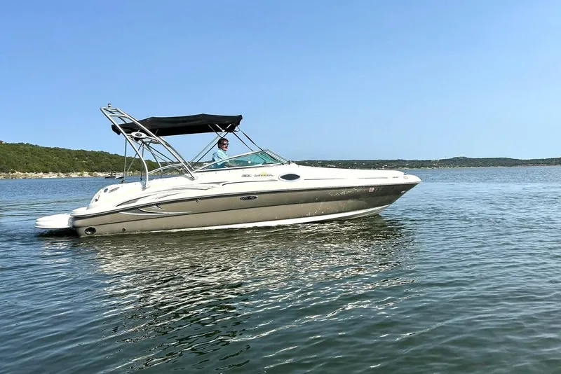 2006 Sea Ray 240 Sundeck. Rare PEWTER hull! MerCruiser 350 MAG, 300 hp, 224 hours. Bravo III. Corsa Captain's Call exhaust. Dual batteries with switch. Trim tabs. Seating includes helm and passenger bucket seats with flip-up bolsters, L-shaped bench, and two bow sun loungers. Two cockpit tables and refreshment center with sink. Walk-through to the swim platform. Wake sports tower. Bow and stern ladders. Clarion stereo and speakers. Black double bimini. Head compartment. FRESHWATER boat stored on lift in covered slip. No trailer but transportation options available. Come and See!