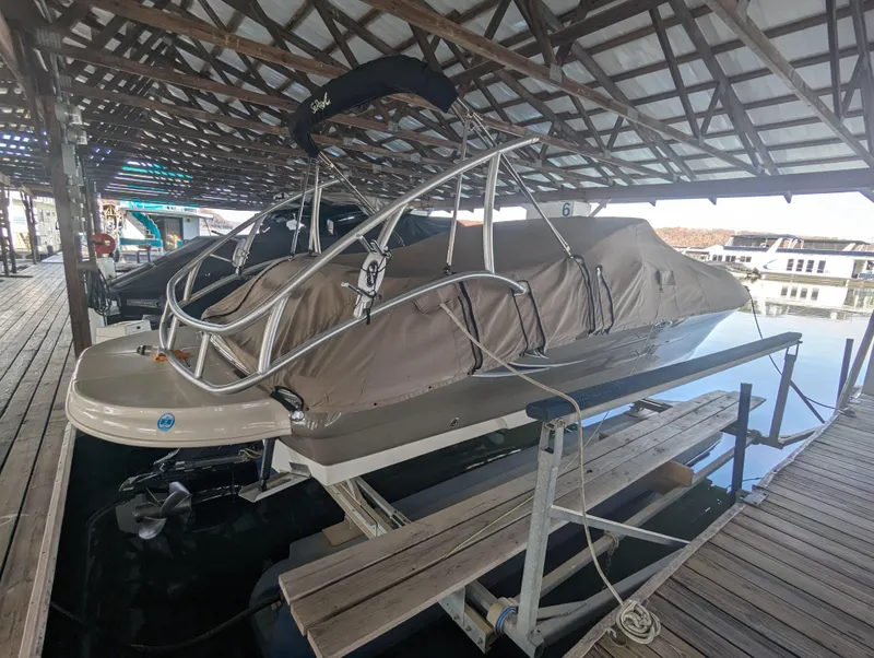 Includes the Bravo 3 upgraded engine w/ 721 hours. This is a brokered boat, no trades. Skis and tube shown in pictures are included with the boat. It has been well taken care of and serviced regularly. Also includes satellite radio, 2 batteries, an anchor with lines, dinette table, throw cushion, cooler under the helm, and a full enclosure. The boat is slipped. Please call our Sales Dept to schedule a viewing! It is possible that the slip and lift may be transferred with the boat for an additional cost.