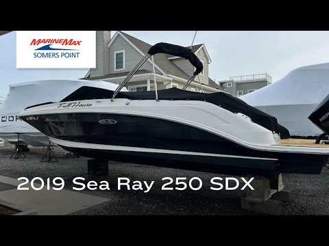 This is a 2019 Sea Ray 250SDX that has been very well-maintained. The striking black hull sides with a contrasting white hull bottom and black canvas give it a sleek and sophisticated look. It has been dry stored indoors its entire life at Windward Marine in Jacksonville Beach.This boat was originally sold by MarineMax and is now being offered as a brokerage boat by its original owner.