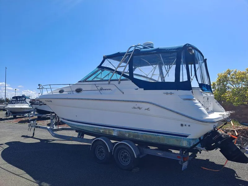 This well cared for Searay 270 Express is water ready on a clean, well maintained trailer. 7.4L Mercruiser. The canvas and upholstery is very clean. An excellent family cruiser for summer fun. Come on down to Boat Country and step foot on your new boat today!