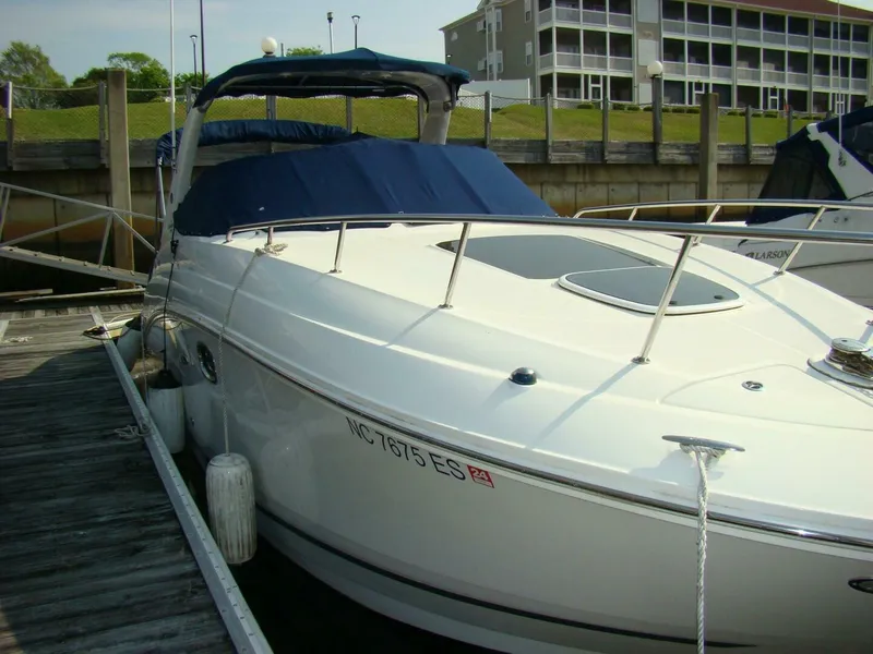 This 2009 Sea Ray 270 Sundancer is powered by a Mercruiser 350 Mag with 380 hours, and the majority of it's life has been spent in fresh water or in dry stack. The boat includes a bimini top. She also comes with a full cockpit cover to protect the cushions and interior cockpit area. It has air conditioning and heat, so you can cruise in any weather. There is also a stereo, tv, vacuflush head, compass, depth finder, microwave, cooktop and more. She's ready to go. Plenty of room for your family and friends. This is a great boat to go cruising for the day or spend the weekend anchored out. She's a very clean boat. Call for a showing today.