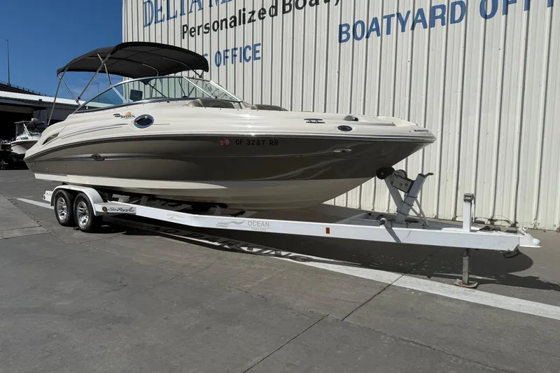 Enjoy the carefree elegance of this graciously appointed 270 Sundeck. Luxurious extras include a cozy starboard berth with portlight, large head compartment with sink and vanity, integrated swim platform with concealed ladder, and a handy wet bar with sink, faucet and built-in cooler.