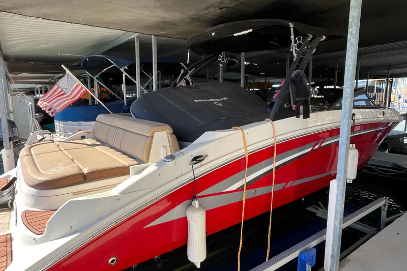 The 270 Sundeck is one of Sea Ray's most popular deck boats thanks to its wide beam, deep cockpit, and comfortable seating for family and guests. The powerful 8.2L MerCruiser provides smooth acceleration and confident handling, while the Bravo III drive enhances control and performance around the dock and underway.