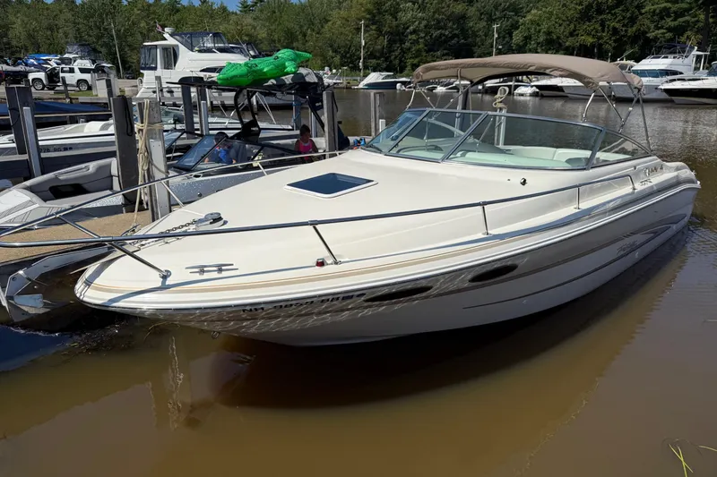 1998 28' Sea Ray 280 Sun Sport. Boat house kept. Very clean and well cared for. All fresh water use. One owner. Runs great. Twin Mercruiser 235's. (Carbureted). Alpha drives. 650 hours. Head, full enclosure canvas, anchor windlass, wet bar, helm bolster, depth finder, compass. $19,900