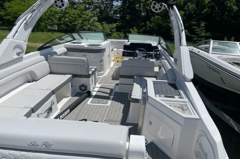 The 2024 Sea Ray SDX 290 Outboard is a yacht-certified deck boat designed for luxury, performance, and versatility. With its deep-V hull and wide beam, this boat provides a stable and smooth ride, perfect for a day of entertaining on the water.