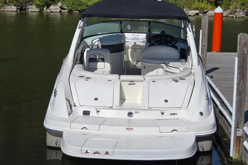 Another Sea Ray that redefines boating. We went all out when we designed this magnificent 290 Select EX. The best components, the best options, the best features including Fusion 12V AM/FM/CD stereo with Multiple speakers and subs and Sirius Satellite Receiver $10,000 system, stainless steel windshield, and optional fiberglass spoiler. Additional ammenities include optional extended swim platform, bimini top with boot and vertical storage, wet bar with storage, plus lockable head enclosure. The 2006 triple axle custom Sea Ray trailer included as well.