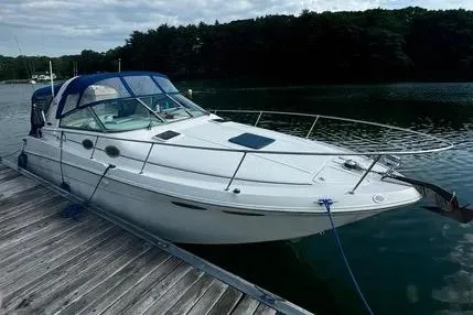 Brand-new full camper top and enclosure (valued at $6,100). Powered by the largest engine package offered - Twin Mercury 5.7L Bravos delivering a combined 520 HP. Equipped with two new outdrives and propellers. Features all-new custom Sea Deck flooring throughout.Windlass anchor system operable from both the helm and the bow. Sea Ray VacuFlush head system with showers located both in the head and at the stern. The cabin includes a full galley, two hanging lockers, and sleeping accommodations for 4-6 (4 comfortably with separate quarters). Electronics include a Garmin touchscreen GPS and a new illuminated compass. Dining tables seat four adults below deck and 4-6 aft. Aft deck also includes a wet bar with sink and a Magnum stainless steel grill. Upholstery is in excellent condition with no cuts - full lounger to port and flip-up bolster at the helm for seated or standing operation.