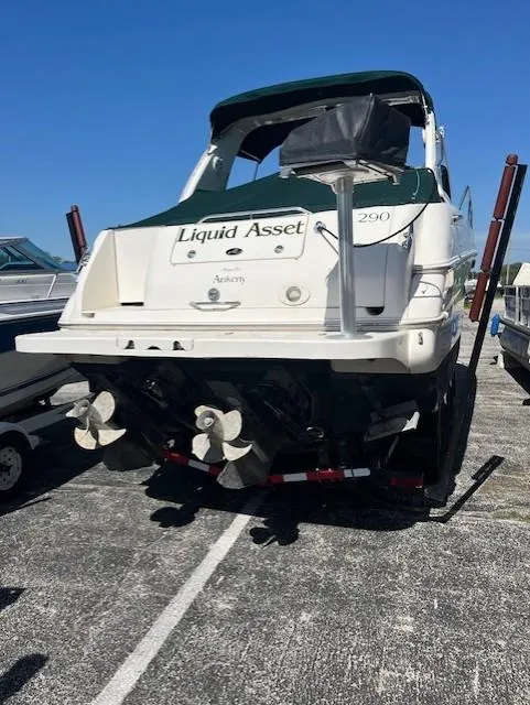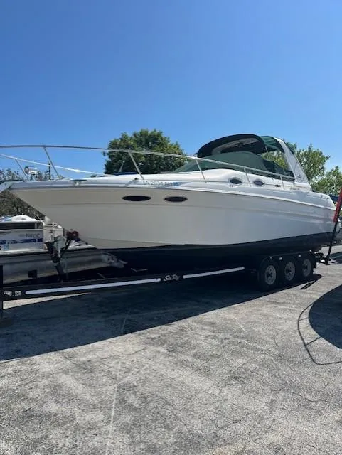 Sea Ray 290 Sundancer! This boat is as close to mint as you'll find. The interior looks like it's off the show room floor. This beauty is equipped with Twin Mercury 5.7L with dual props. The engines have 740 hours before. With those dual props this boat gets on plane quickly and parks smooth. This Sundancer has a large swim platform with a grill. It has a roomy cockpit with comfortable seating. The helm has ample seating for guests and a nice wet bar. Walk down the stairs to the roomy salon and enjoy a private shower, sink and toilet. It's equipped with a dinette on the port and a full kitchenette on the starboard with a sink, stove, fridge, microwave and storage. Comes with two flatscreen T.Vs (one for the salon and one for the cockpit). Comes with trailer. This boat is ready for a weekend overnight trip with the family or a day cruise around the lake. It's a pretty boat; come see for yourself at Saylorville Lake Marina in Polk City, IA.