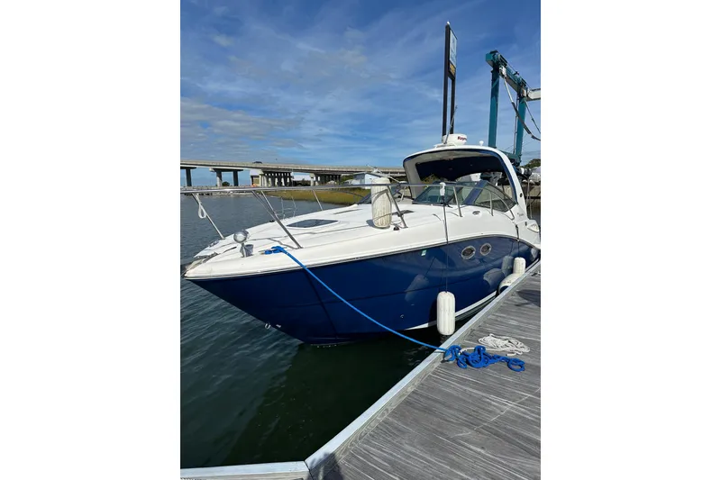 The 290 Sundancer offers a wealth of upgraded features including fiberglass arch top with aft sunshade, Sirius satellite receiver with six months activation and optional colored hull. Full canvas enclosure with aft curtain is also included, plus electrically activated engine hatch and optional underwater swim platform lighting.