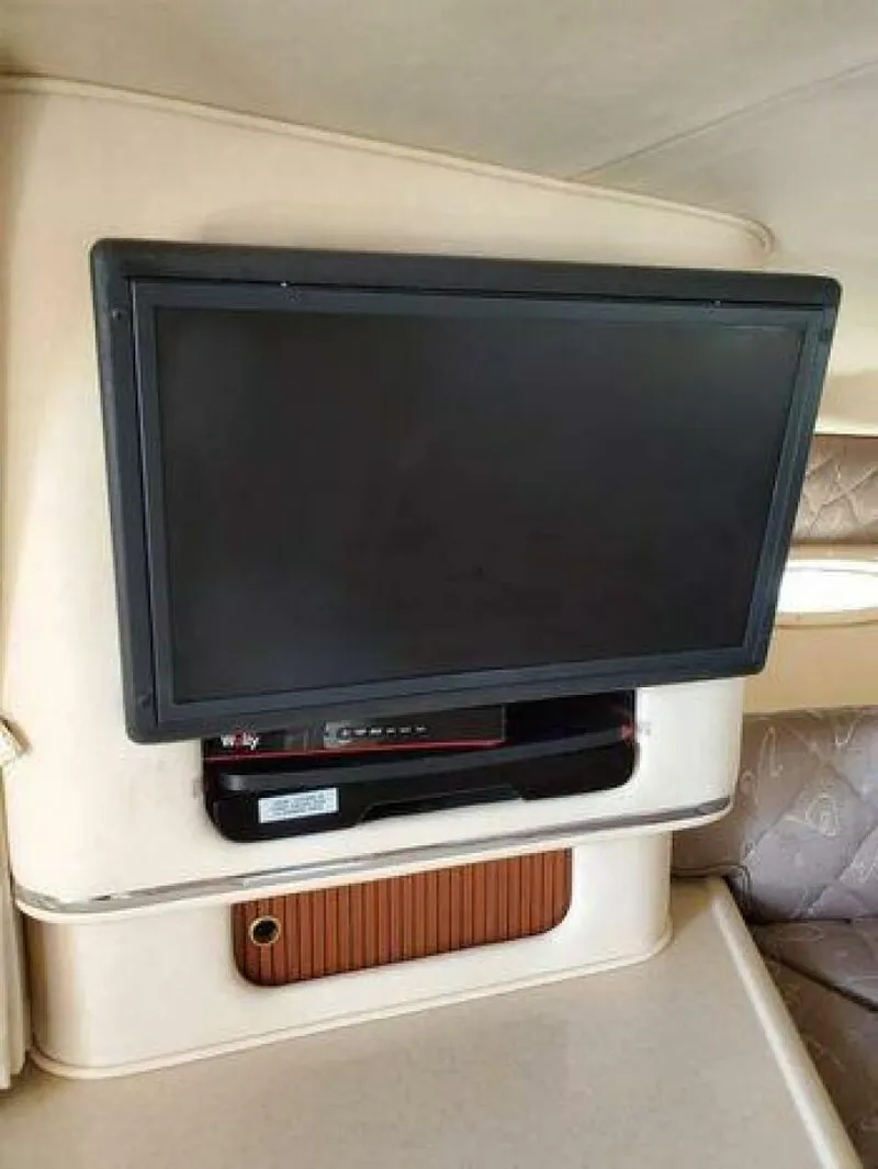 Loaded with Garmin GPS, VHF, electric engine hatch, remote spotlight, anchor windlass, air conditioning, big swim platform, removable stern seating, mid cabin, enclosed marine head with sink & fresh water shower, 120V shore power, stove, fridge, AC converter, microwave, forward v-berth, dinette which converts to a double berth, mid cabin with room to sleep 2 more guests.