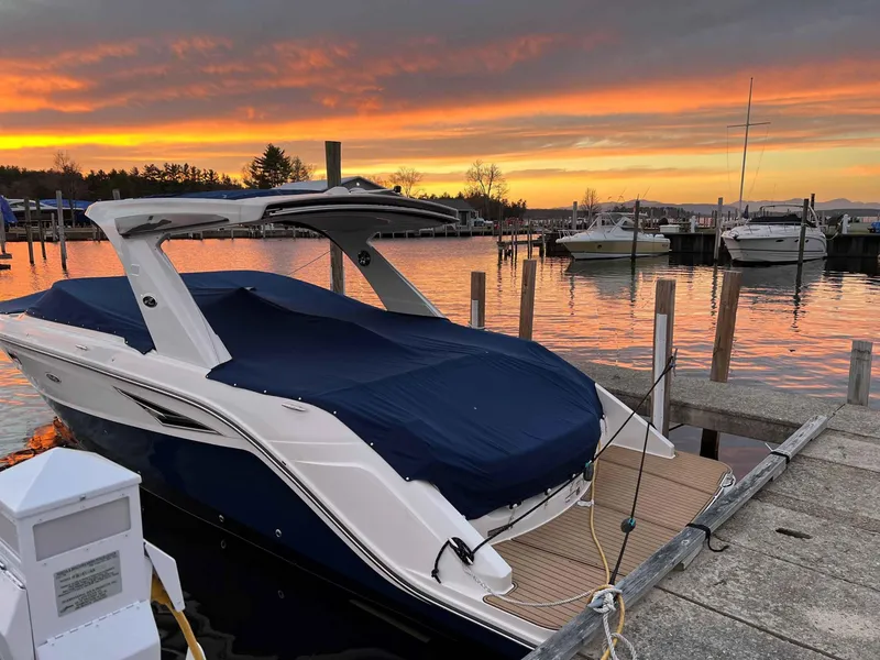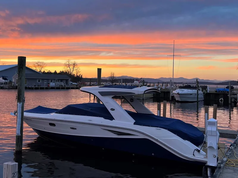 THIS 2020 310SLX HAS BEEN WELL KEPT AND GENTLY USED. RECENTLY CERAMIC COATED AND SOLD BY US, STORED INSIDE EACH SEASON WITH US AND MAINTAINED BY US. THIS BOAT IS POWERED BY TWIN MERCRUISER 6.2L AXIUS STERN DRIVES WITH 300HP EACH, IT HAS 144 HOURS OF LAKE USE. OPTIONS INLCUDE FIBERGLASS HARDTOP WITH OPENING CENTER AND POWER AFT SUNSHADE, FULL CANVAS ENCLOSURE AS WELL AS COCKPIT/BOW COVERS, SNAP IN SEA DEK FLOORING, DUAL SIMRAD DASH, VACU FLUSH HEAD, WINDLASS WITH STAINLESS ANCHOR, DRS TABS, FULL INTERIOR EXTERIOR BLUE LED LIGHTING PKJG, SUBMERSIBLE SWIM PLATFORM, STEREO UPGRADE, SHOREPOWER WITH CHARGER, REFRIGERATOR, ELECTRIC GRILL WITH INVERTER, DOCKING LIGHTS, FLAG, BOW FILLER CUSHION, HEAD UPGRADE, AND FENDER CLIPS. THIS BOAT ALSO HAD ALL NEW BATTERIES PUT IN THIS SEASON AND HAS THE OPTION OF A MULTI-YEAR SLIP RENTAL FROM THE OWNER AT MVYC. THE BOAT CAN BE SEEN AT OUT LACONIA LOCATION.