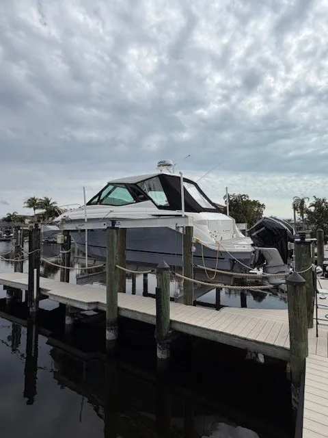 If you're looking for a 320 Sundancer OB Coupe without the typical "Southwest Florida freckles" on the bottom, this is your boat. Always lift kept. No bottom paint. Exceptionally clean. Dialed-in options. This is how you buy one. The 320 OB Coupe hits the sweet spot-outboard performance, joystick control, enclosed helm comfort, and true overnight capability. It's the modern express cruiser done correctly.