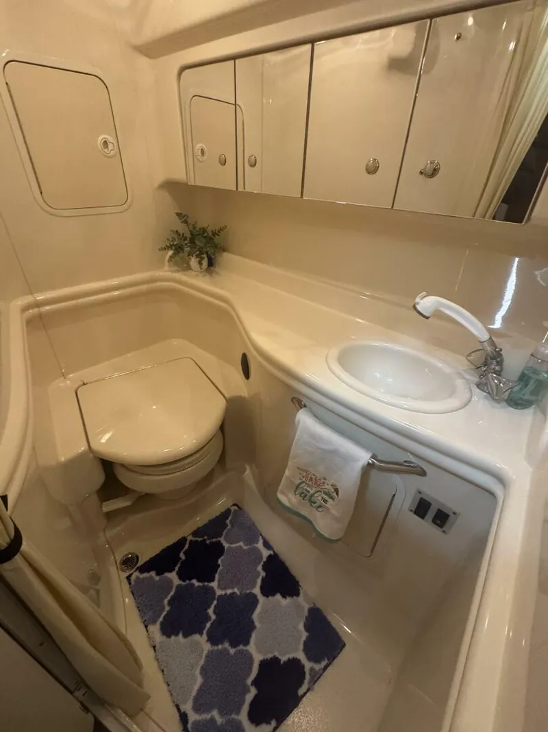 Exceptionally clean and well-maintained, this 2002 Sea Ray 320 Sundancer has been freshwater-kept since new and shows true pride of ownership. Powered by twin MerCruiser 350 MAG MPI 300 HP engines that were replaced with rebuilt engines and have 790 hours. The generator has just 170 hours.