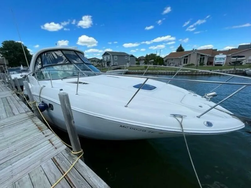 Freshwater / Great Lakes boat since new this vessel features Twin MerCruiser 6.2-litre 320 hp Gas DTS (Electronic Controls) Engine's with Bravo III Sterndrives and 630 original hours. Notable features include but are not limited to the following: Air-Conditioning & Heat (1-Unit), Head (Vacuflush) w/Vanity/Sink/Shower, Windlass Anchor w/Forward Pedal-Controls, Cockpit Wet Bar w/Sink/Refrigerator/Electric BBQ-Grill, Raymarine (Color) GPS/Chartplotter, Premium Fusion Sound System w/JL-Audio Speakers / Sub-Woofer's, Underwater Lights, and MUCH more!