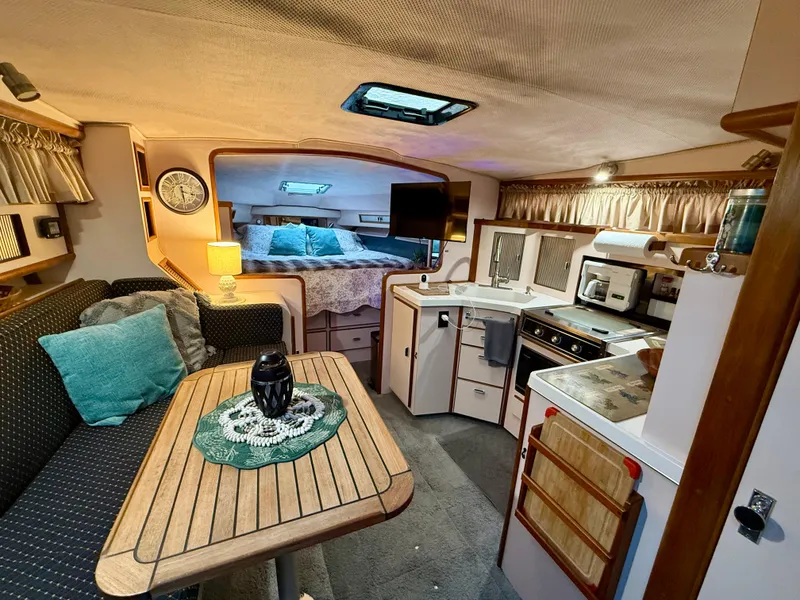 Spacious Interior: The 340 Sundancer features a roomy cabin with comfortable sleeping accommodations, a well-equipped galley, and a full head, making it ideal for weekend getaways.