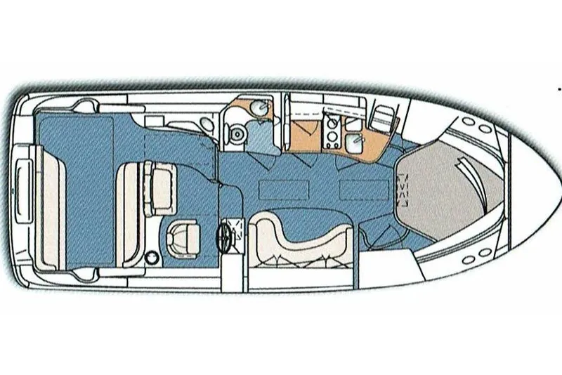 The 340 Sundancer has a large cockpit, a well-appointed cabin, and a serious base power plant, to summarize Sea Ray's finest sport cruiser. Designed for entertaining on a higher scale, the 340 Sundancer features a portside entertainment center complete with wet bar, cooler and icemaker. The cockpit table converts easily to a spacious sunpad by inserting the matching filler cushions. With high-quality marine-grade vinyl, every seat is amazingly comfortable, from the adjustable helm seat with flip-up thigh-rise to the full aft-facing seat with a convenient storage base and cooler. There's also comfortable aft bench seating. Other standards include a self-bailing fiberglass cockpit liner, snap-in carpet, cockpit bolsters and more. Extra gear is neatly stored in an enclosed storage compartment located in the transom wall and equipped with a gas-assisted lid. The Sea Ray 340 Sundancer is impeccably styled to a level only Sea Ray can achieve. At the helm, the captain has a broad dash that places everything in easy sight and reach, including illuminated weatherproof rocker switches, digital depth finder, compass, and full backlit instrumentation with a concealed circuit breaker panel. Under the electrically operated engine hatch, the 380 horsepower twin MerCruiser V-drives provide an exceptional ride with responsive handling, thanks in part to the heavy-duty hydraulic steering. A large sliding acrylic door opens into a cabin that accommodates up to six people on the the Sea Ray 340 Sundancer: deep-pile marine carpet, floor storage, a standard TV - VCR combination, and a Clarion AM-FM digital cassette stereo with six-disc CD changer and eight speakers. The forward stateroom has a full-size berth with two hanging mirrored lockers, a vanity, and plenty of personal storage space. The mid stateroom features Sea Ray's design in which the conversation pit converts to a private double berth. In the salon, a choice of seating plans allows for even more sleeping space with a convertible dinette, or a stylish couch and table with storage below. The galley of the 340 Sundancer features all the comforts of home, including a 3.4-cubic-foot refrigerator, microwave, flush-mount two-burner electric stove, and fiberglass countertop with sink and cutting board cover to create even more usable space. The drawers and storage areas stow dishes, glasses, and flatware securely thanks to special inserts that hold them firmly in place. The fiberglass enclosed standup head with vanity provides a VacuFlush head and shower. The pressure water system and six-gallon water heater make sure that hot water is always available. A carbon monoxide monitor is standard equipment. Among the 340 Sundancer's many other conveniences are a Sunbrella Bimini top and sun shade, which when installed still allows plenty of head room at the helm. An extended swim platform with concealed stainless steel ladder allows for clutter-free boarding access from the water. There is also dockside power, fresh water washdown with a hot and cold cockpit shower and dockside inlet concealed in the transom. A long options list offers even more ways to customize the 340 Sundancer, including a 12,000 BTU air conditioner and heater, Westerbeke generator ( needs repair).