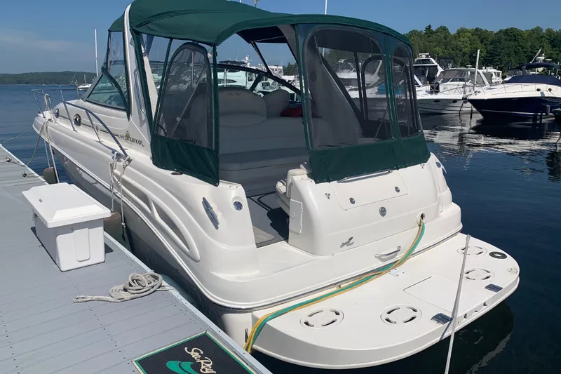 New listing! All freshwater 340 Sundancer, low hours, extremely clean and well maintained. Updated electronics (Raymarine Chartplotter, VHF and Depth), bow and stern thrusters. All new canvas enclosure.