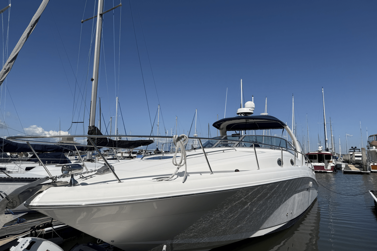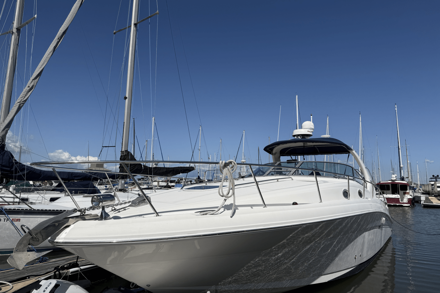Spacious Layout: The 340 Sundancer offers a roomy cockpit and cabin area, making it ideal for entertaining and overnight stays.