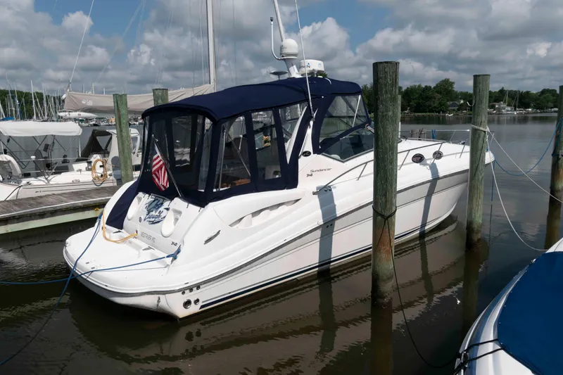 The boat's sleek design and quality craftsmanship receive high marks, with many highlighting its smooth handling and reliable performance on the water. Owners appreciate the well-appointed cabin, featuring ample sleeping accommodations, a functional galley, and a clean, modern layout. Additionally, the cockpit area is often noted for its versatility and comfort, perfect for entertaining guests. Overall, the 2007 Sea Ray 340 Sundancer is celebrated for combining style, comfort, and functionality in a mid-sized cruiser.