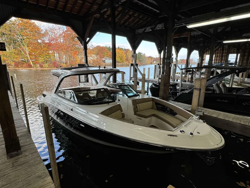 This 2015 Sea Ray 350 SLX is one seriously Beautiful Boat. Meticulously maintained. This boat has been on the Lake for its entire life. With less than 300 Hours this boat is ready for its new owner. The boat recently has had all Service including removing Drives and doing ALL maintenance. This boat has 6 new AMG batteries. Was ceramic coated and all the Teak was Redone. The boat is loaded with options Full Canvas Enclosure and Cockpit and Bow Covers. Extended Sunshade, Dynamic Running Surface, Grill and Refrigerator. The boat has Twin Mercury 350MAG engines with Axius Joystick. This boat is priced to sell and can be seen at our Laconia Location.