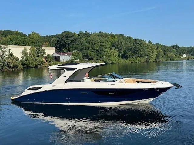 2022 Sea Ray 350SLX, all freshwater use for the extremely low hours of only 44. Powered by twin Mercruiser 8.2L 380hp Bravo III's this boat can do it all. The enhanced SLX 350 delivers a superior ride and unrivaled handling. NextWave™ innovations, such as quietRIDE™ technology featuring Tuned Transom®, and optional Dynamic Running Surface™ further elevate the boating experience. This boat includes an intuitive helm with dual 12-inch Simrad® Select Response GlassDash touchscreen information displays, including Mercury VesselView® Link Data. Designed with families in mind, the Port Hideaway® provides an air-conditioned space with an expanded cabin and plush seating. Along with best-In-Class seating, the layout includes seating for 18 anchored by cockpit social area & "Concealable" transom loungers.