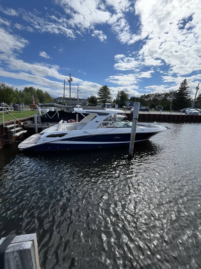 This Beautiful 2022 Sea Ray 350slx is powered by twin Mercruiser 6.2l 350hp engines paired with Bravo three drives with only 220 freshwater hours. This boat has every option you could ask for including, Hydraulic Submersible swim platform, electric rear sunshade, fixed arch with opening sun roof, grill/fridge wet bar area in cock pit, seadeck on the swim platform and through out the cockpit, windlass anchor, joystick piloting, dual integrated Simard 12 inch displays, full head area with vacuflush head/ sink, port side cabin area with tv and air conditioning , bow and cockpit cover and many more options. This boat has plenty of options and seating for all your friends and family to enjoy. Come down to our Laconia location to check this boat out! Call 603-524-6661 for more information or to schedule a showing today. We are open seven days a week in Laconia, Alton Bay, and Hudson, New Hampshire!