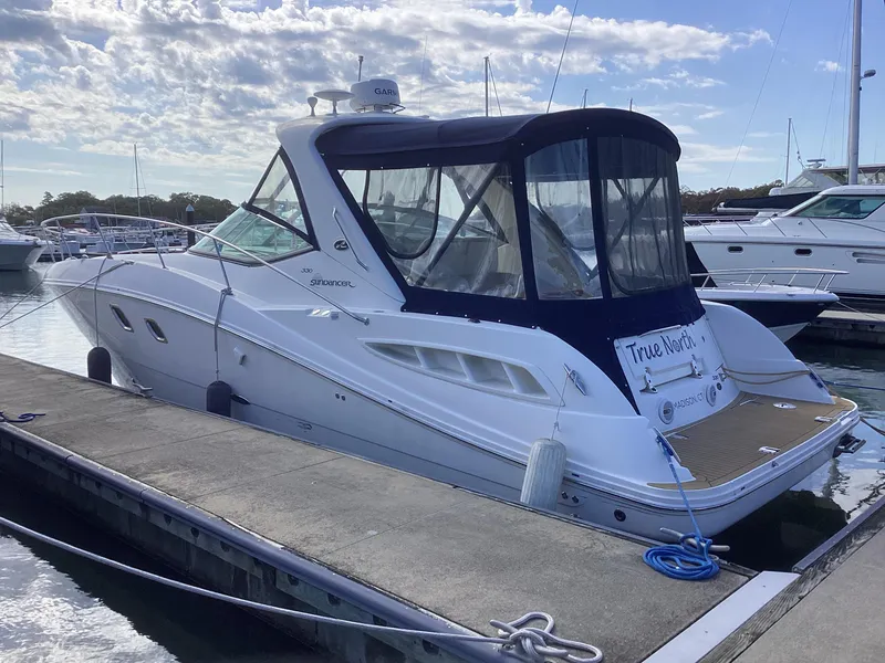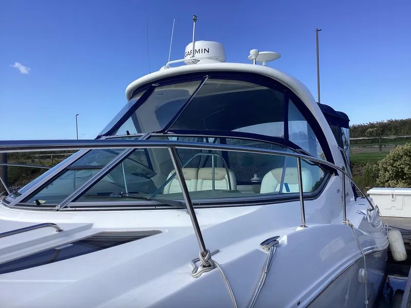 Spacious Interior: The 350 Sundancer features a well-designed cabin with ample space for entertaining and relaxing. The open layout includes a comfortable salon area, a fully equipped galley, and a cozy V-berth, making it ideal for weekend getaways. 2. Luxurious Finish: Sea Ray is known for its high-quality craftsmanship, and the 350 Sundancer is no exception. The interior boasts elegant finishes, plush seating, and modern amenities that enhance the overall boating experience. 3. Powerful Performance: Equipped with twin Mercury engines, the 350 Sundancer delivers impressive performance on the water. The boat provides smooth handling and can reach good speeds, making it suitable for both cruising and water sports. 4. Versatile Cockpit: The cockpit area is designed for entertaining, featuring ample seating, a wet bar, and easy access to the swim platform. This makes it a great space for socializing while enjoying the sun and water. 5. Excellent Storage: The boat includes plenty of storage compartments throughout, allowing for organized stowage of gear and personal items, which is crucial for longer trips.