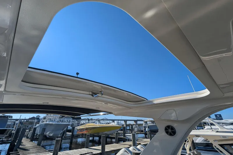 - Entertainment Oasis: Fusion Sound System with subwoofer, Direct TV sets, rod holders, wet bar, and spacious seating ensure every moment on board is enjoyable.