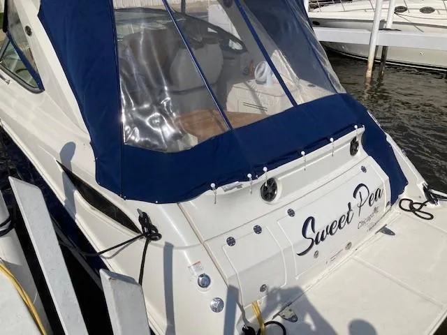 Hardtop with Full Canvas, Side Curtains, Cockpit Cover, Boat & Engine Manuals, Anchor, Anchor Lines, Shore Power Cords, Extended Swim Platform, Bottom Paint, Fiberglass Hardtop, Air Conditioning / Heat, Battery Converter, Battery Switch - Dual, Windshield Wipers, VacuFlush System with Holding Tank, Separate Head & Shower, Hot Water System, Pressure Water System, Refrigerator / Freezer, Electric Stove, Microwave, Refrigerator in Cockpit, Cockpit Wet Bar, Speed Gauge, Depth Gauge, Hour meter, Depth Sounder, Chart plotter, Radar, Autopilot, Smart craft System, VHF Radio, Hailer, Horn, Trim Tabs, Stereo in Cabin & Cockpit, Bluetooth Connectivity, CD Player, Satellite Radio, Cockpit - Infinity Woven, Extended Sun Shade, Central Vac, Blue LED Underwater Light, Merc Vessel View, Remote Spotlight, 2 TVs in Cabin