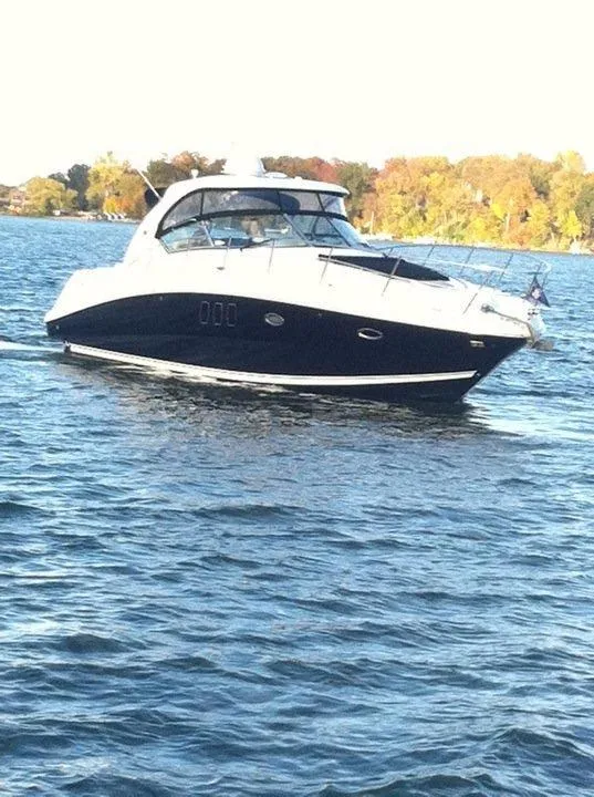 Here is a very well maintained and loaded Sea Ray, stored in a heated building for the winter and in a covered slip for the summer. The boat comes with twin 380 HP Mercruisers with 900 hours, generator, air conditioning and heat, automatic anchoring system, head and shower, radar, GPS, full galley, cockpit wet bat with fridge, full canvas enclosure plus much more info you can see by hitting the "FULL SPECS" button. Please contact us with any questions.