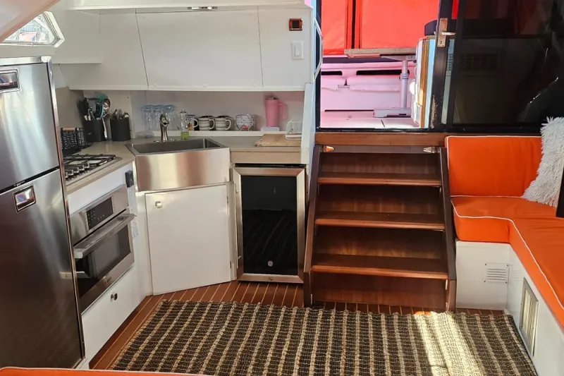 The galley and salon are the focal points of this refit with a big, beautiful vitrifigo refrigerator and a huge 5 burner range fit for any professional or home chef. The engines and systems have been professionally maintained throughout this ownership by a dedicated vessel caretaker with no expense spared by the owners. With well over 100k in upgrades this iconic late 80's boat has been transformed into a modern living and lounge space. This Cruiser has an almost 14 foot beam which creates large interior spaces and allows for a beautiful back cockpit area that can easily seat 10 or more for entertaining. Full canvas for the cockpit also allows you utilize your "patio" area 365 days of the year. Motivated sellers are allowing you get your hands on one of the best deals on the market for Sea Ray cruisers.