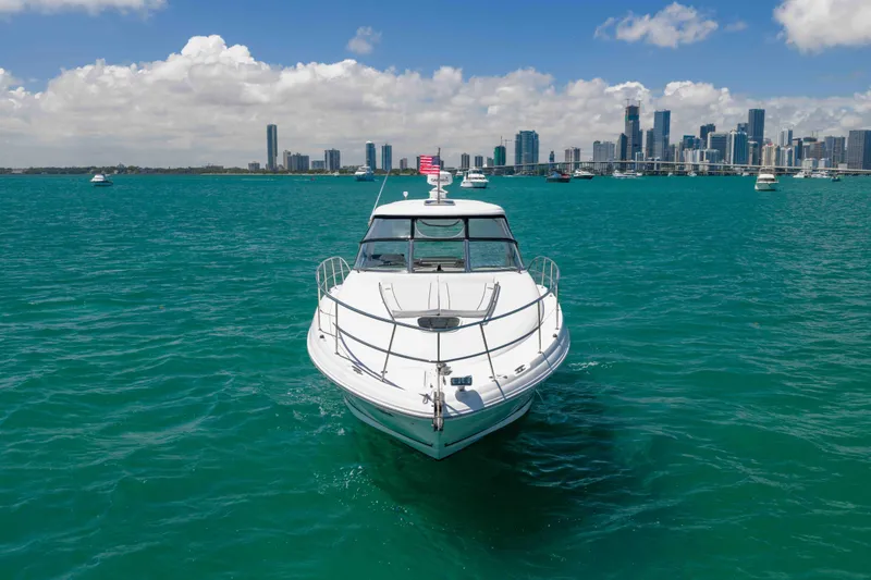 Spacious express cruiser with comfortable cabin layout, perfect for weekend trips or extended cruising. Strong performance, smooth ride, and classic Sea Ray styling.