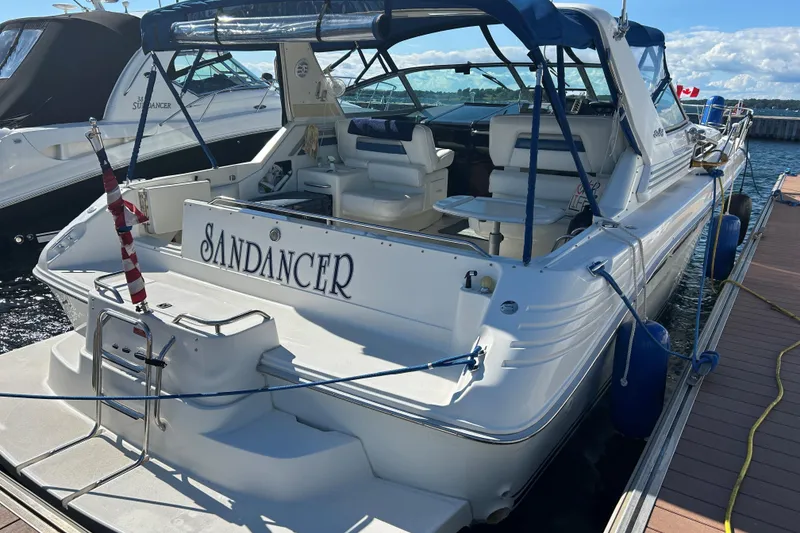 "Sandancer" has been meticulously maintained since new. She is just a two owner vessel and has been commissioned in fresh water only for the past 35 years, between Lake Michigan and the St. Lawrence! Fully equipped with all the amenities for a day out on the water or a multi-day trip, there is plenty of room for entertaining as well as sleeping accommodations (up to 6 comfortably). The forward master stateroom offers privacy with a large, accessible pedestal queen berth, hanging locker and plenty of storage. The guest suite (mid cabin) offers bunk beds that can convert to a seating area, which also has its own privacy door. The Salon features a C-shaped settee that converts into a double berth, a moveable dinette table, and an entertainment system. You will also find a fully equipped galley including a 3-burner electric stove, refrigerator/freezer, microwave, sink, breakfast bar, and plenty of storage. Finally, the private head with Vac-U-Flush toilet and a separate enclosed shower stall round out the interior. Out on the cockpit and deck you will find a raised helm station with double helm seating, which provides excellent visibility. There is a large U-shaped seating area aft that can convert into a sun pad, a portside wet bar, ice maker and cooler. The molded swim platform with transom door allows for easy water access. Recent upgrades and improvements to Sandancer include reupholstered cabin cushions (2025), new hot water heater (2025), new forward AC unit (2024), reconditioned props (2024), new Goode windlass and anchor rode (2023), and more! Canvas and isinglass are in excellent condition and includes all screens. Updated electronics to ensure your travels are done safely and Westerbeke generator to allow for full functioning of all boat amenities while you are on the hook!