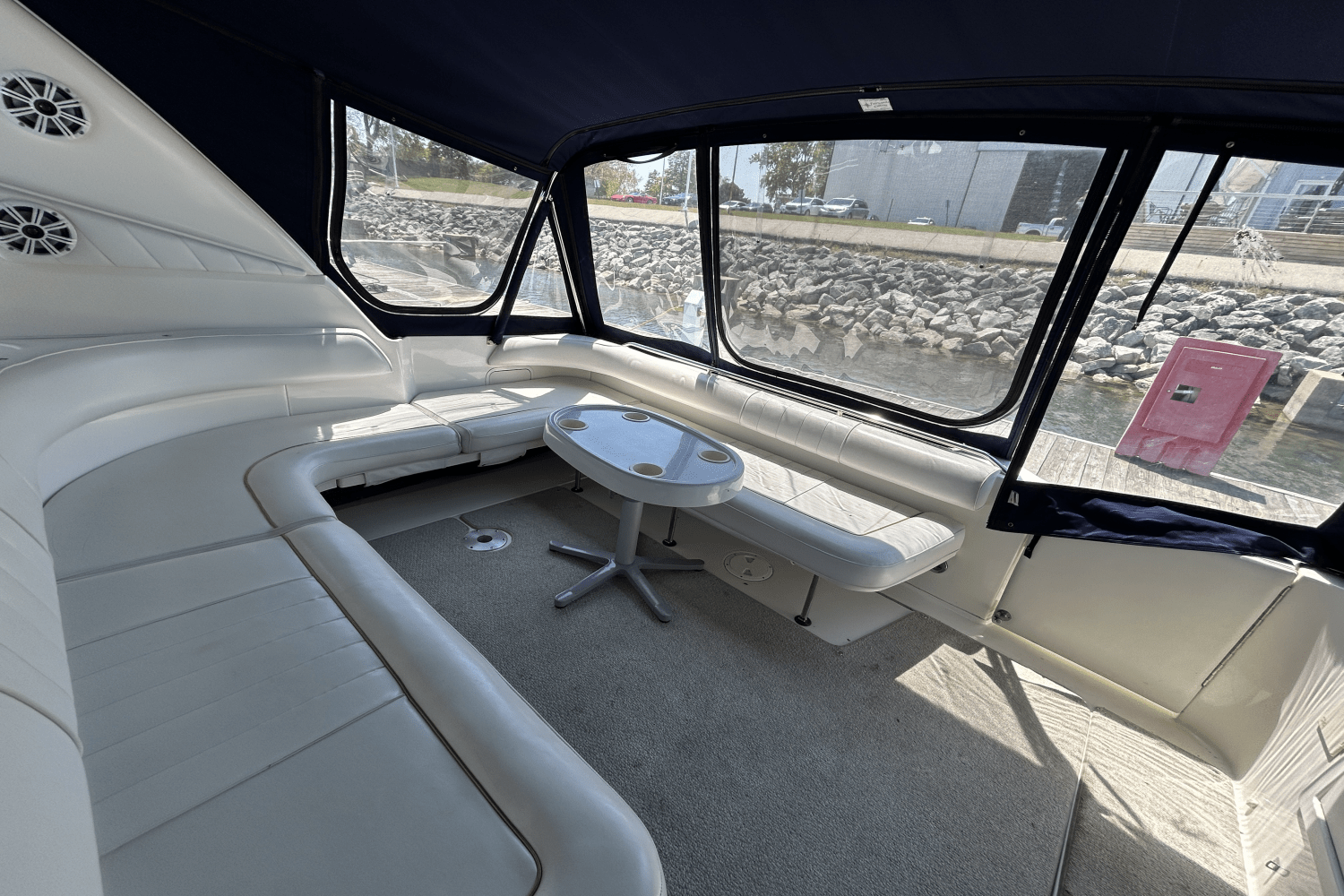 Well-Equipped Cabin: The interior features a full galley, enclosed head with shower, and ample storage, providing many of the comforts of home on the water.