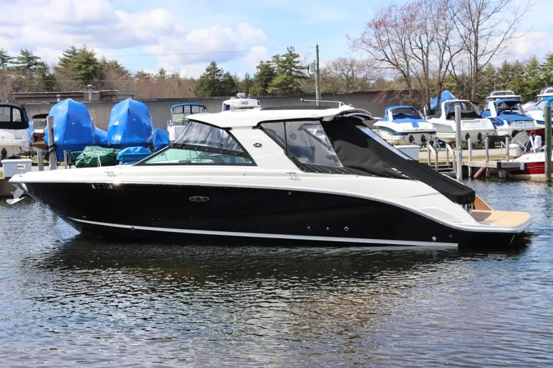 This 2020 Sea Ray 400SLX is truly IMMACULATE!!! This one-owner boat shows true Pride of ownership. The boat spent its summer life on Freshwater and during Winter, it has been kept inside a Heated Storage Building. This boat was also equipped with all options for the salt. The Boat has twin 430HP Mercury SeaCore 8.2 engines. It is Sea Ray's ULTIMATE day boat - Spend the day above deck soaking up the sun, then go below deck to hang out or spend the night. Best-In-Class seating layout includes seating for 22. For overnighting, premium comforts extend to the cabin via a queen-sized bed in the aft section and a forward bunk that converts to form a social gathering area. This Boat is Loaded with all the options, like an extended sunshade, Submersible Swim-Platform, Underwater and Interior Lights, Cockpit Heat and Air, Teak Cockpit Flooring and Teak table, Twin Simrad Screens, TV, Bow Filler Seat, and the boat is complete with 4G radar. Also, this boat has only 109 Freshwater Hours and was recently Diamond Ceramic coated and Detailed. This boat will not be for sale for long! This boat can be seen at the Irwin Marine Laconia Location. 603-524-6661