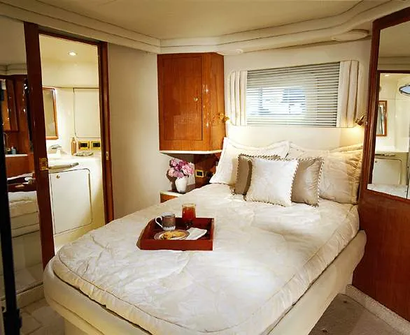 This Sea Ray 420 Aft "Summer Tanner" has been well loved by her current owners and has been updated through the years. Pride of ownership shows inside and out. Powered with 430 HP Cummins Diesels with 700 Hrs. Sporty-styling, spirited performance, and an innovative interior that set this stylish aft cabin a step ahead of her competitors. The upscale interior is fitted with forward and aft staterooms, featuring a single berth/third cabin opposite the home-size galley, spacious salon with dinette, two heads both with shower stalls, and cherry wood interior. She is turn-key and ready for Florida / Bahamas!