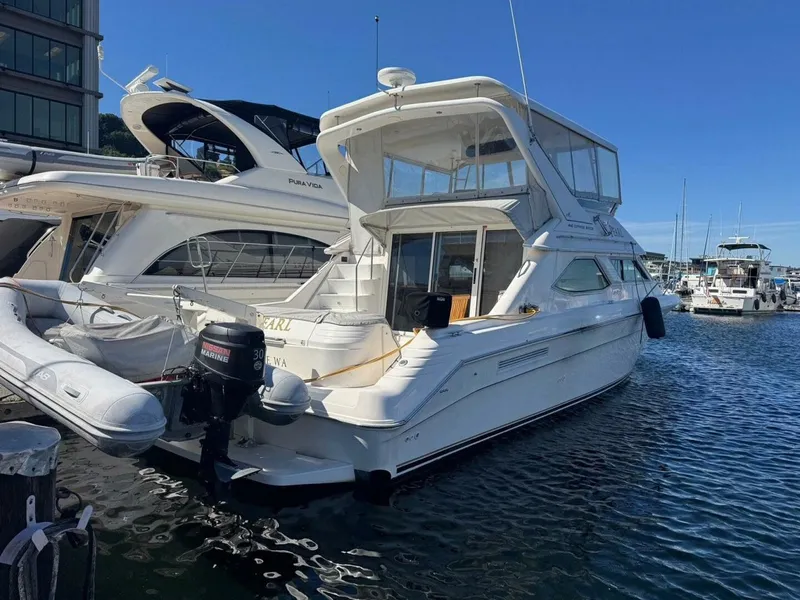 This well-maintained Sea Ray 440 Express Bridge is seriously for sale.