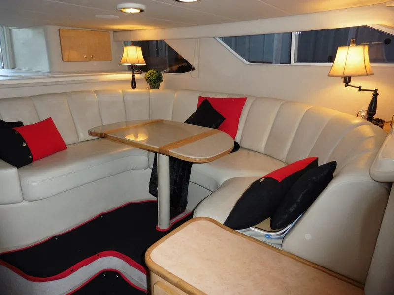 Introducing the stunning 1997 Sea Ray 440 Express Bridge, a remarkable express cruiser that combines elegance with performance. With an overall length of 44 feet, this vessel is designed for both comfort and adventure on the water. The durable fiberglass hull ensures a smooth ride, while the powerful Caterpillar inboard engines, each boasting 420 hp, provide impressive performance and reliability with only 2150 hours of use. Inside, the boat features two well-appointed cabins and two heads, making it perfect for extended trips with family or friends. The electric windlass adds convenience to anchoring, enhancing your boating experience. With a cruising speed of 20 knots, this Sea Ray is ready to take you on unforgettable journeys. Whether you're relaxing on the deck or navigating through scenic waters, the 440 Express Bridge is a perfect blend of luxury and functionality, ensuring every outing is a memorable one.