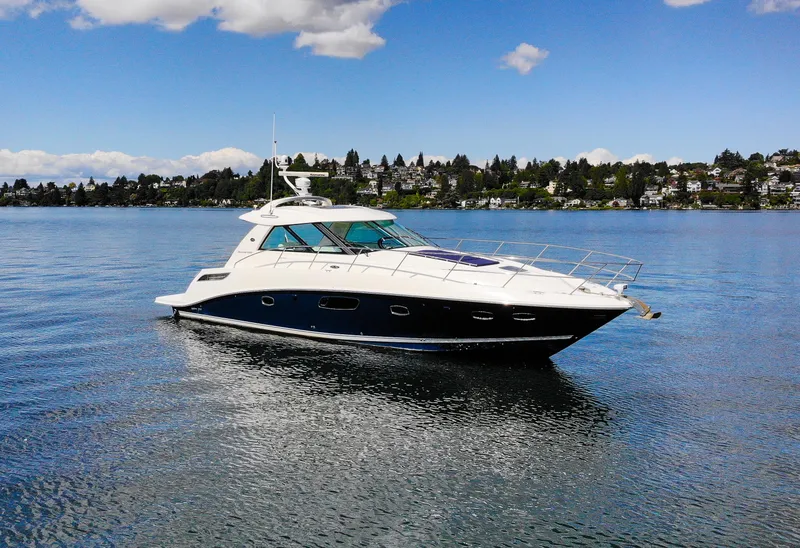 Shi-Ann is a rare find!! This exceptionally well kept Sea Ray 450 Sundancer is being offer by only her second owner and it's clear no expense has been spared in her upkeep and maintenance. This versatile coupe style express cruiser gives you the best of both worlds, an open and fresh air cruiser with the protection of a fully enclosed cruising yacht- all in one. This has been a no-shoes boat and it shows. With updated electronics, joystick docking, spotless interior, 2 stateroom layout that features a separate Head and shower and a media room that converts to a stateroom - this boat literally does it all. Freshwater moored its entire life, she shows care not found on many other vessels her size. She even has transferrable fresh water moorage! Highlights include: