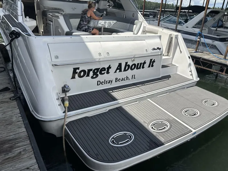 Introducing the stunning 1996 Sea Ray 500 Sundancer, a remarkable express cruiser that embodies elegance and performance. With an overall length of 50 feet, this vessel boasts a sleek fiberglass hull designed in a deep vee shape, ensuring a smooth and stable ride on the water. Powered by twin Caterpillar 3176 inboard engines, each delivering an impressive 600 horsepower, this cruiser promises exhilarating performance with a total of 1,200 horsepower. With only 660 hours of use, these engines are ready for new adventures. The interior features two heads, providing convenience for guests and crew alike. The thoughtful design ensures comfort and functionality, making it perfect for both leisurely cruising and entertaining. Whether you're seeking a weekend getaway or a day on the water, the Sea Ray 500 Sundancer, aptly named "Forget About It," is ready to deliver unforgettable experiences.