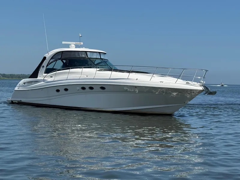 This 2003 500 Sundancer has been meticulously maintained and cared for. Looks and runs spectacular. Many recent upgrade's and loaded with optional equipment :Bow Thruster, Radar ,GPS Plotter, Vessel View System Upgrade, Underwater lighting, Hydraulic Swim Platform, Sat TV, Bose Surround Sound in Cabin, Cockpit AC, Washer/Dryer Combo and much more.