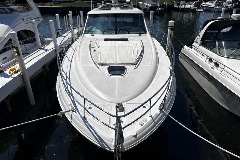STK# ST-KB-12 Cummins GSC 550 / 550 HP x 2 Zeus Drives, Side Curtains, Aft Curtains, Carbon Monoxide System, Halon System in Bilge, Fire Extinguisher, Flare kit, Dock lines, Life Jackets, First Aid Kit, Anchor, Anchor line, Boat Hook, Boat Manuals, Engine Manuals, Shore Power Cord, Hydraulic Swim Platform, Fiberglass Hardtop, Anchor Windlass, Air Conditioning, Heating,, Battery Converter, Isoboost System, Battery switch-single, Battery switch-dual, Windshield Wipers, VacuFlush System w/holding tank, Separate Head and Shower,Hot Water System, Transom Shower (cold only),Transom Shower (hot and cold),Pressure Water System, Hot Water Tank ,Dockside Pressure, Refrigerator/Freezer, Electric Stove, Microwave, Convection Oven, Coffee Maker, Ice Maker in cockpit, Cockpit Wet Bar, Grill Cockpit, Shore Power 50 AMP, Speed Gauge, Depth Gauge, Hourmeter, Depth Sounder, Chartplotter, Radar, Autopilot, VHF Radio, Horn, Trim Tabs, Auto Trim Tabs, Stereo in cabin, Stereo in cockpit Bluetooth connectivity, CD Player, Satellite TV system