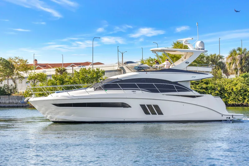 Introducing the stunning 2016 Sea Ray 510 Fly, a remarkable flybridge yacht that combines elegance and performance. With an overall length of 51 feet, this semi-displacement fiberglass vessel is designed for both comfort and efficiency on the water. Powered by twin Cummins QSC 8.3 Diesel engines, each delivering an impressive 574 horsepower, this yacht promises a thrilling ride while ensuring reliability. The inboard configuration and V Drive system enhance maneuverability, making it a joy to navigate. The Sea Ray 510 Fly offers ample accommodation with two heads, providing convenience for guests. The thoughtful design includes features that enhance the overall experience, ensuring that every journey is memorable. Whether you're cruising along the coast or enjoying a weekend getaway, the Sea Ray 510 Fly is a perfect blend of luxury and performance, ready to create unforgettable moments on the water.