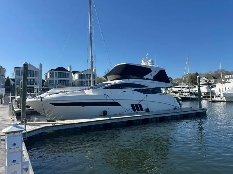 Meticulously maintained 2016 Sea Ray L590 Fly, primarily a freshwater and brackish water vessel with most of its life on the Potomac/Chesapeake Bay, powered by triple Cummins diesels with joystick control and Seakeeper stabilization. Features include a spacious flybridge, elegant salon, gourmet galley, and three luxurious staterooms-perfect for extended cruising or entertaining in style and comfort. Boat comes with a full isinglass enclosed flybridge and tender. Yearly service was completed before winterization in the offseason. If you are looking for a turnkey yacht 55 ft+, this is the yacht for you!