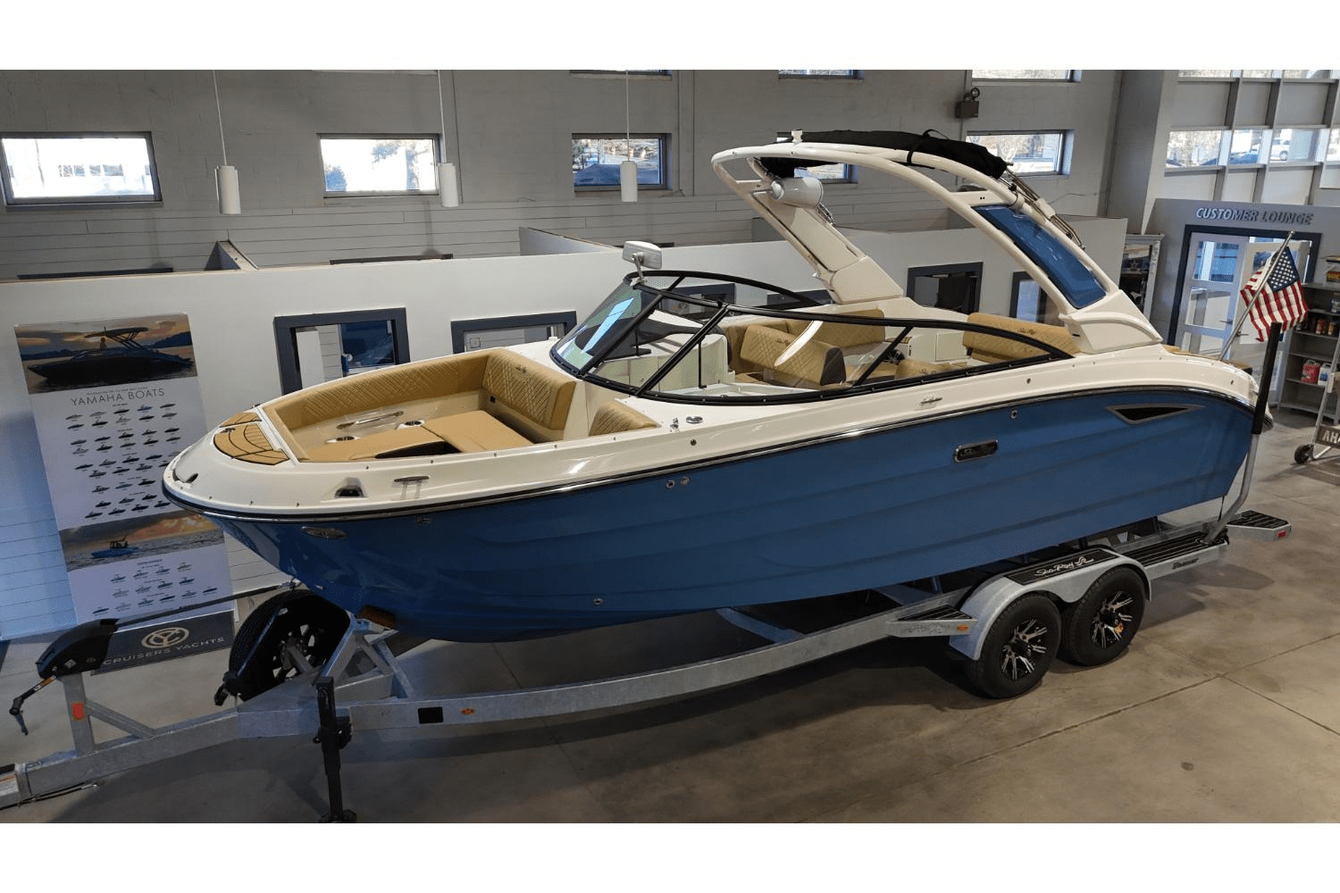 Advanced Surf Technology: Equipped with Sea Ray’s innovative Surf System, it creates customizable, powerful waves ideal for surfing and wakeboarding enthusiasts.