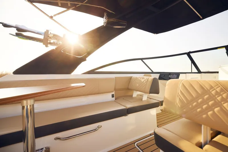 - Arrange and re-arrange to your heart's content. Reversible seat backs can be configured for conversation and watching watersports. To extend your boating season, an optional cockpit heater with Surfinity patented heated blanket can be added.