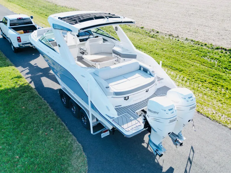 This stunning 2023 Sea Ray 310 SLX OB, with incredibly low hours, is ready to be yours. Powered by 700 horsepower of Mercury outboards and equipped with Mercury's joystick controls, you'll enjoy effortless speed on the water and docking with complete confidence. Delivered with a brand-new 2024 Road King Trailer, this boat delivers the ultimate in luxury and performance. Loaded with every amenity, the Sea Ray 310 SLX OB offers more than just a boat - it's a premier, top-of-the-line experience on the water.