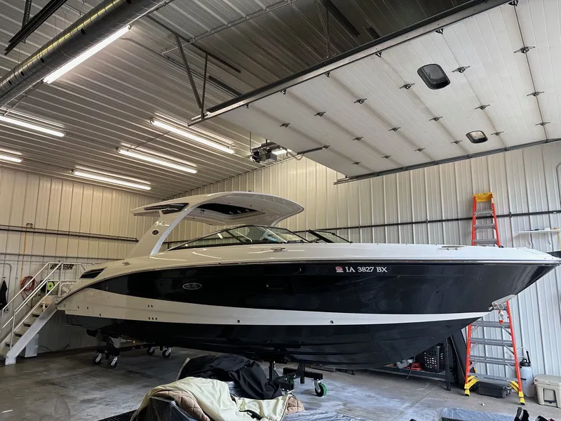 The 2024 Sea Ray 350 SLX belongs to the latter-crafted for those who understand that time on the water isn't just recreation, it's a lifestyle. Finished in a striking black?and?white hull, this boat carries a presence that's both modern and timeless, the kind of silhouette that draws eyes the moment it glides into view.