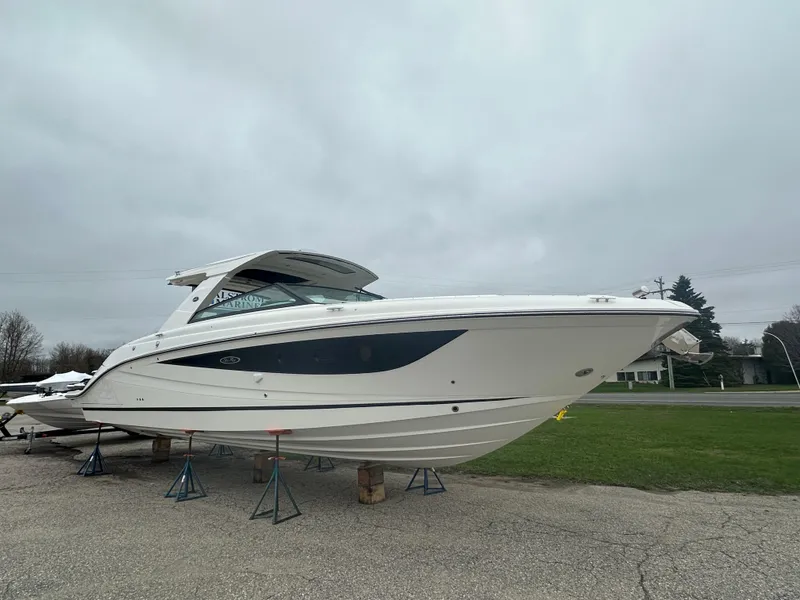 Introducing the stunning 2025 Sea Ray SLX 400 Outboard, a new bowrider that seamlessly blends luxury and performance. With an impressive overall length of 39.5 feet, this vessel boasts a sleek fiberglass hull designed in a modified Vee shape, ensuring a smooth and stable ride on the water. Powered by dual Mercury 600 XL V12 VERADO engines, each delivering a robust 600 horsepower, this boat promises exhilarating speed and agility. The advanced joystick control enhances maneuverability, making docking and navigation effortless. The SLX 400 is equipped with a well-appointed head, providing convenience for extended outings. Its thoughtful design ensures ample space for relaxation and entertainment, making it perfect for family adventures or social gatherings. Experience the ultimate in boating luxury with the Sea Ray SLX 400 Outboard, where every detail is crafted for an unforgettable experience on the water.